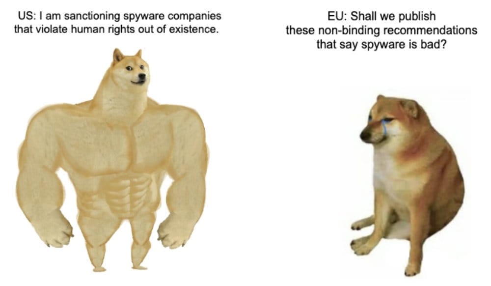 With most commercial spyware vendors operating from inside the EU, the lack of any local crackdown of any form has left the US alone on the barricades.