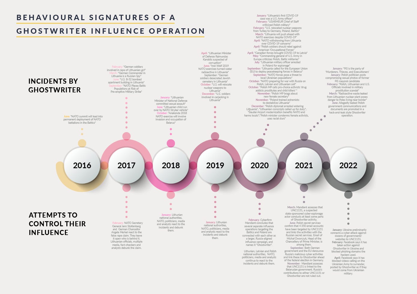 Unlike the IRA and Russia's other internet troll farms and influence operations, Ghostwriter works on a higher level. Operations are timed and planned to coincide before or during important political events or military exercises, often requiring public rebuttals and clarifications from the targeted governments or politicians.