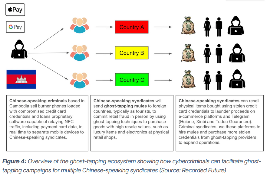 NFC relay attack ecosystem: Recorded Future's Insikt Group has published an overview of the underground ecosystem that's being built around NFC relay attacks, or ghost tapping, as the company calls it. The report looks at how Chinese cybercriminal groups are monopolizing the market through easy-to-use MaaS services and a sprawling money mule infrastructure.