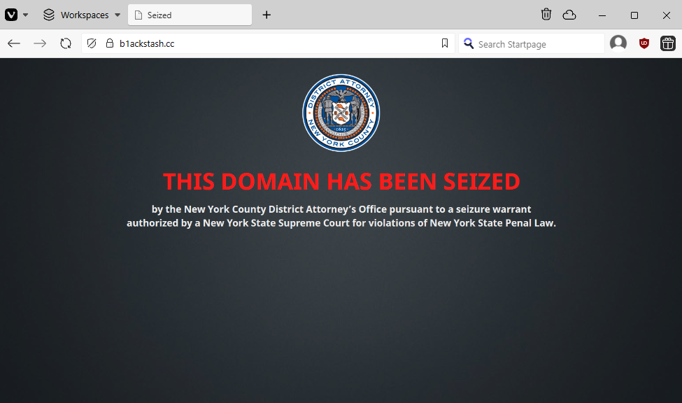 Unconfirmed B1ack Stash takedown: There's a NY District Attorney seizure banner on the website of B1ack Stash, a well-known carding forum. [h/t RR564]
