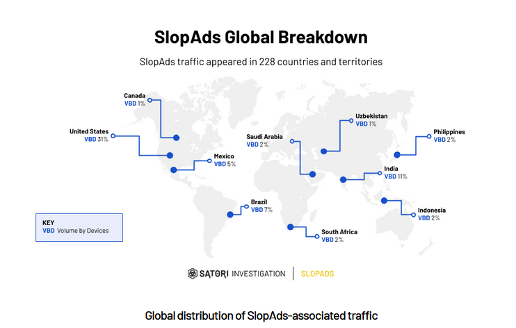 SlopAds click-fraud operation: More than 220 Android apps available through the official Google Play Store are part of a click-fraud operation named SlopAds. The apps open hidden windows on infected devices where they load and click on online ads. According to Human Security, the apps were downloaded more than 38 million times and were clicking on more than 2.3 billion ads per day before Google took them down.