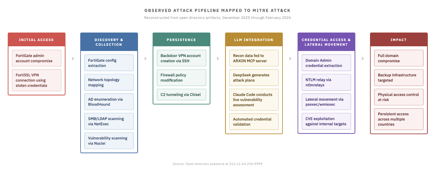 "The significance of this operation is not reliant on any single technique. Every tool observed, from BloodHound to Nuclei, and Impacket is well documented. What sets this activity apart is the integration of LLMs: a (likely) single operator managing simultaneous intrusions across multiple countries with analytical support at every stage."