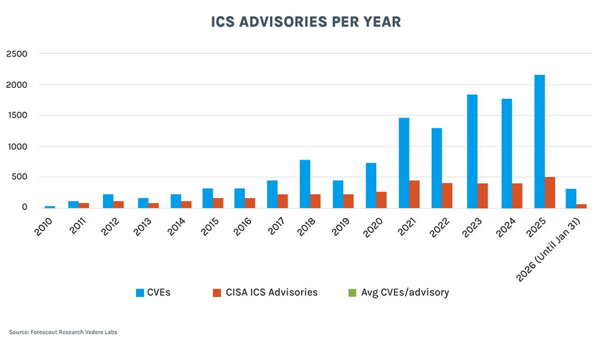 ICS vulnerabilities on the rise: Vendors published 508 security advisories for ICS equipment last year, the most of any year since CVEs started being published. Over 82% of the advisories were for high or critical severity bugs. CISA tracked and notified federal agencies of only a fifth of last year's ICS vulnerabilities, according to Forescout.