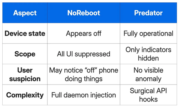 Predator can hide camera and mic indicators: The Predator spyware can hide camera and microphone indicators on an iPhone's screen to enable silent recording. Unlike previous open-source exploits that achieved the same result, Predator can disable the indicators while leaving the rest of the screen UI active. The spyware was developed by a company known as Intellexa, previously Cytrox.