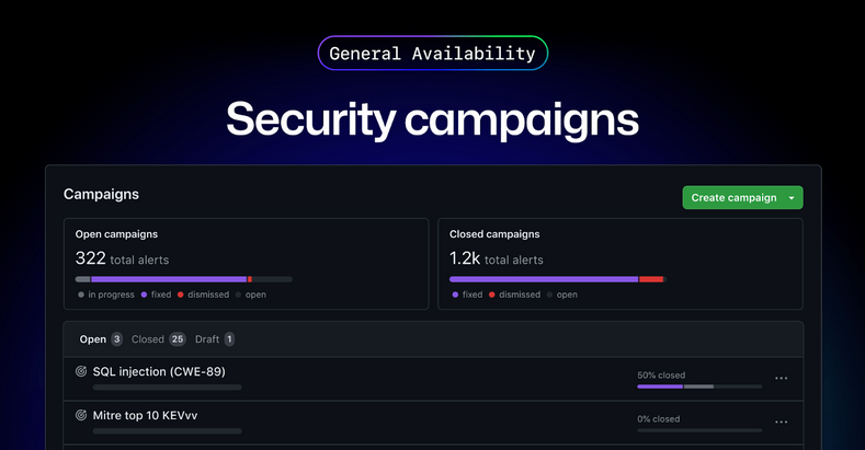 GitHub Security Campaigns: GitHub has released a new security feature named Security Campaigns that can allow organizations to fix security alerts at scale across projects.