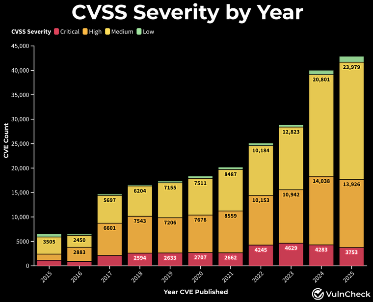 Fewer critical bugs: The number of critical vulnerabilities has gone down in recent years even if the number of vulnerabilities have gone up. The number is even smaller if the new CVSSv4 rating is applied. According to VulnCheck, a quarter of all vulnerabilities reported last year now have a CVSSv4 rating.
