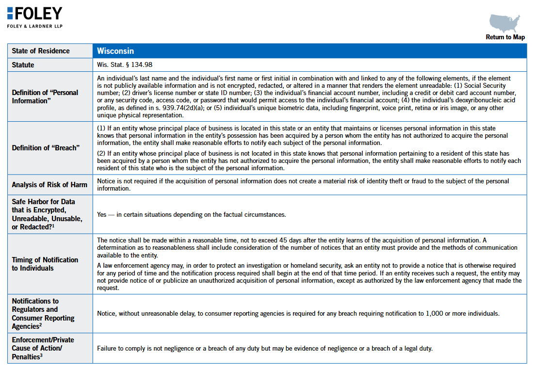 US data breach notification laws: US law firm Foley & Lardner has published an overview of all the data breach notification laws active at the level of each US state. [h/t DataBreaches.net]