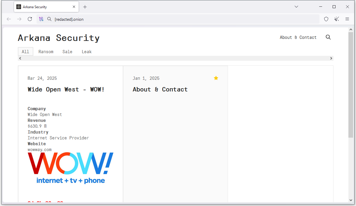 New Arkana ransomware group: The infosec world welcomed a new ransomware gang this week named Arkana. Their first victim is WOW, one of the largest ISPs in the US.