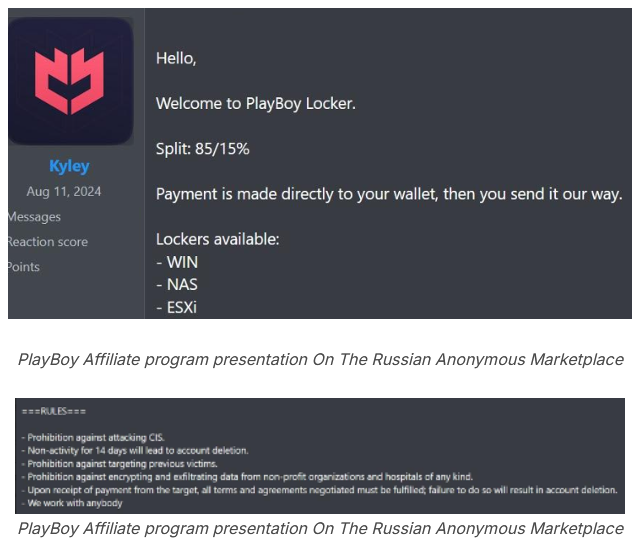 PlayBoy Locker RaaS: Cybereason has spotted a new Ransomware-as-a-Service platform named PlayBoy Locker.