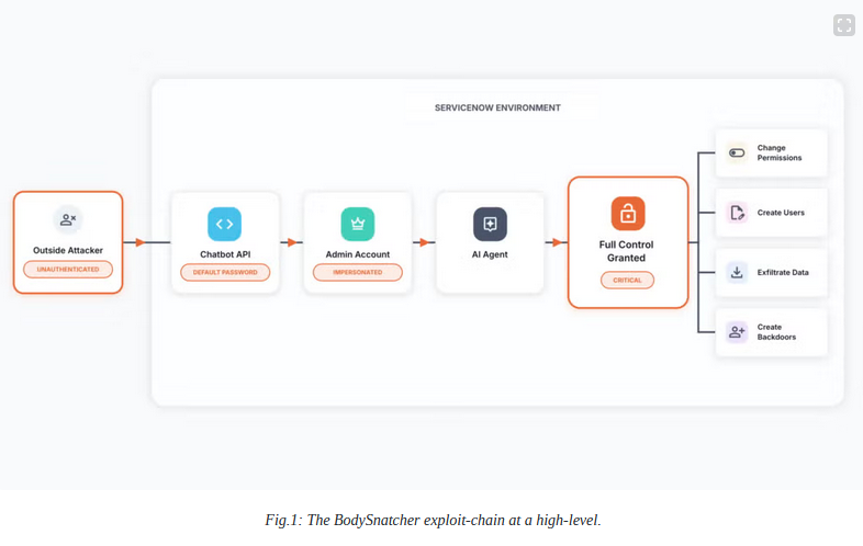 BodySnatcher attack: AppOmni researchers have found a vulnerability in the ServiceNow Virtual Agent that could have allowed attackers to bypass authentication and run prompts on any customer accounts.