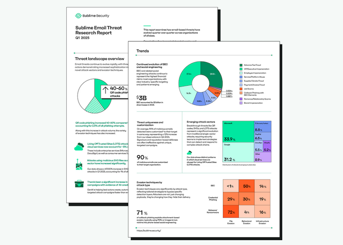 Gain essential visibility into evolving email threats, targeted industry attacks, and sophisticated evasion techniques observed across Q1 2025. Get the "Sublime Email Threat Research Report: Emerging trends & key insights" report here.