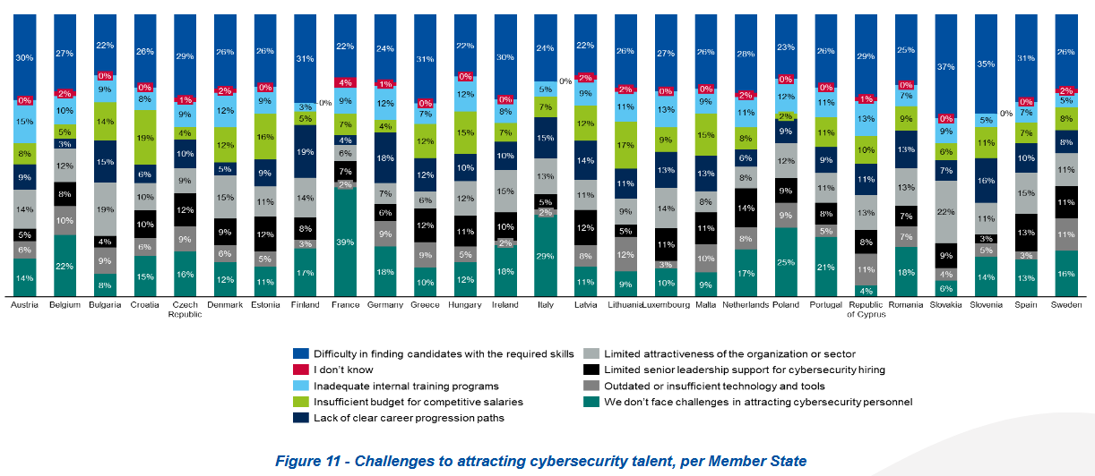 Public and private critical sector organizations across the EU are having issues attracting and retaining cybersecurity talent.