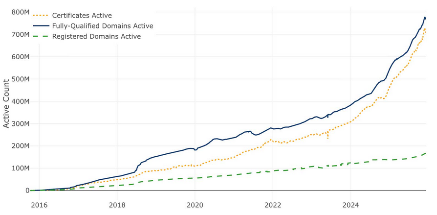 Let's Encrypt to reach 1 billion certs: The Let's Encrypt project expects to reach one billion active certificates over the course of 2026.