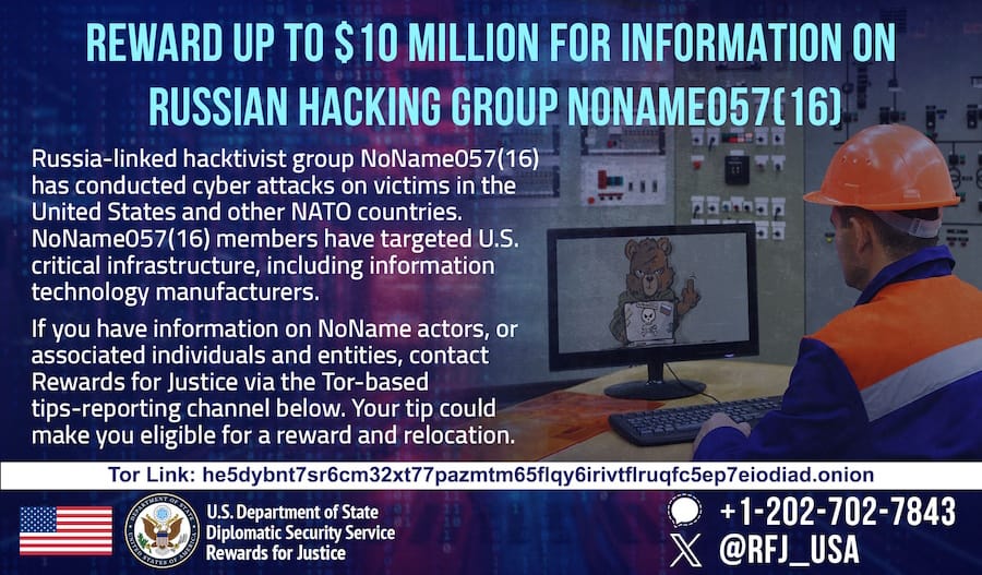 US charges NoName057 and CARR member: The US has indicted a Ukrainian woman for participating in cyberattacks against critical infrastructure. Victoria Eduardovna Dubranova was allegedly part of two pro-Kremlin hacktivist groups named NoName057 and CyberArmyofRussia_Reborn (CARR). The US Justice Department says the groups tampered with US public water systems and caused an ammonia leak at a US meat processing factory. Dubranova pleaded not guilty in a US court this week. The US is also offering rewards for additional information on other members of the two groups [CARR//NoName057]. CISA, the NSA, and other international cybersecurity agencies also released joint security advisories on the activity of pro-Kremlin hacktivists, while Twitter also took down NoName057's account.