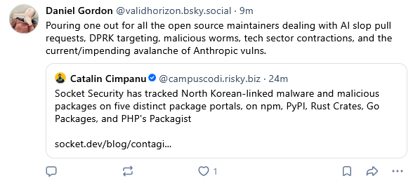 DPRK is now on five dev ecosystems: Socket Security has tracked North Korean-linked malware and malicious packages on five distinct package portals, on npm, PyPI, Rust Crates, Go Packages, and PHP's Packagist.