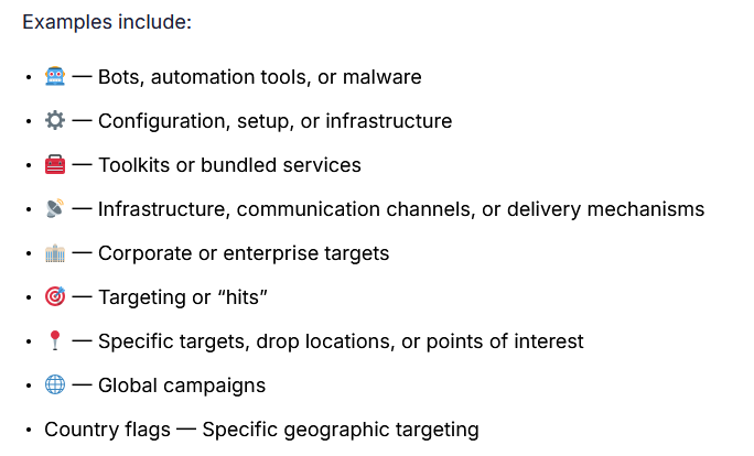 Emoji as a coded language: Threat intel company Flashpoint has published a report on how threat actors are using emojis as a coded language in underground hacking forums and Telegram channels.
