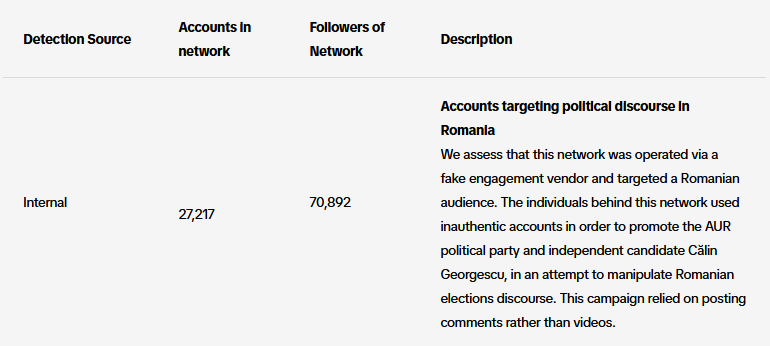 TikTok info-ops summary: TikTok has published its monthly report on covert influence operations the company has spotted on its platform. TikTok botnets taken down last month targeted Romania, Moldova, Indonesia, Irak, and Ukraine. All campaigns were designed to manipulate political speech in those countries. Many were run by political parties from those countries.