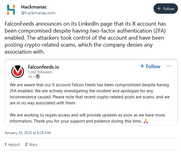 Twitter account hacks: Multiple high-profile accounts have been hacked over the past week to promote various memecoins. Known victims so far: Snopes, TIME Magazine, the NASDAQ, the Tor Project, threat intel firm FalconFeeds, former Brazilian president Jair Bolsonaro, Twitch streamer Asmongold, sports journalist Jemele Hill, Breaking Bad actor Dean Norris, and various crypto-bro and smaller accounts.