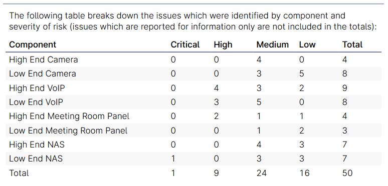 UK enterprise market study: An NCC study commissioned by the UK government has found that some types of enterprise devices used across the UK are riddled with vulnerabilities. Some of the findings are below.