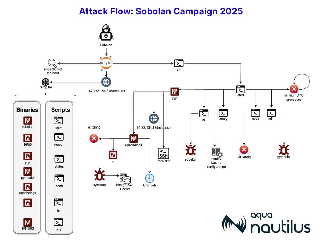 Sobolan: AquaSec has spotted a new crypto-mining botnet targeting Jupyter computing notebooks. The botnet is named Sobolan, the Romanian word for "rat."