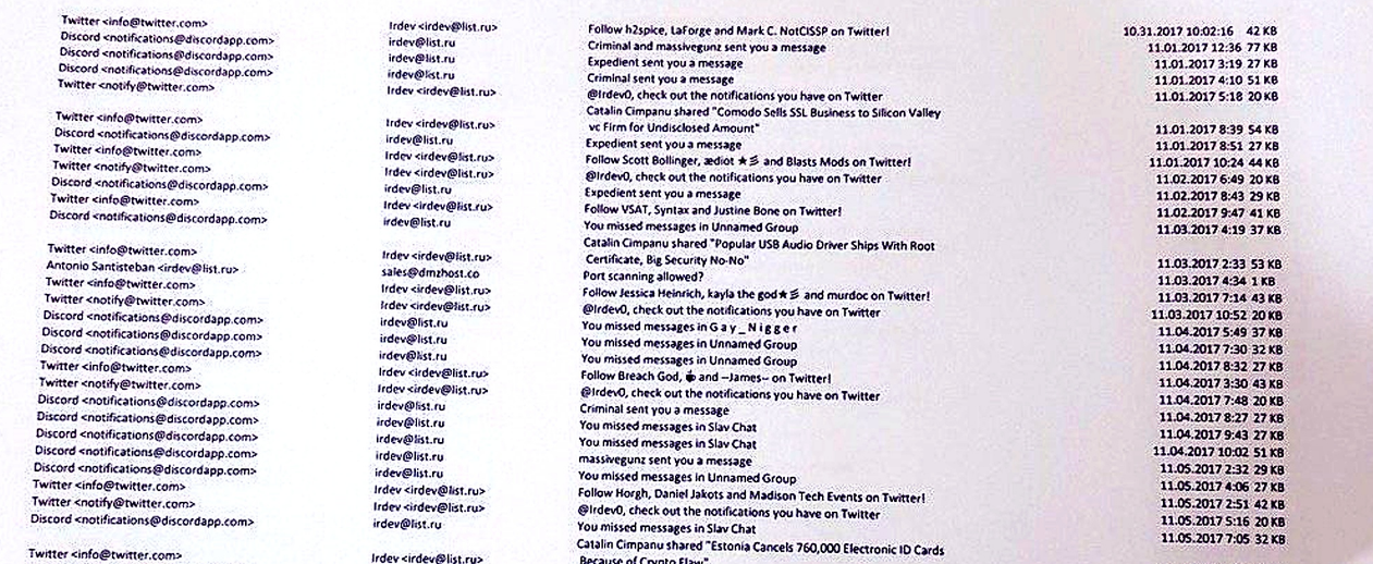Resecurity leaks IRDev email comms: Security firm Resecurity has released 105 pages containing the email subjects extracted from the one of the email inboxes of John Erin Binns, aka IRDev, one of the members of the Scattered LAPSUS$ Hunters hacking group. [h/t SwitHak]