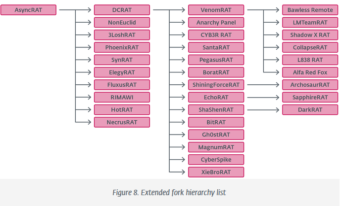 AsyncRAT family tree: ESET researchers have catalogued more than 30 remote access trojans that evolved from the old AsyncRAT codebase.