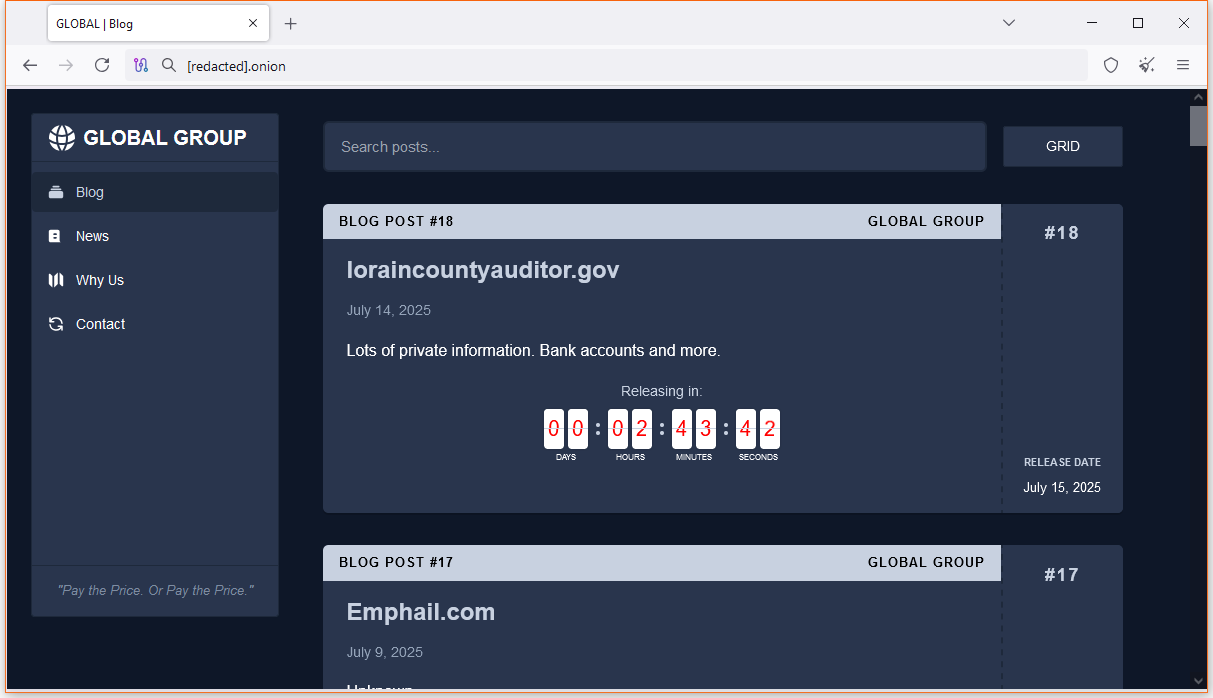 Global Group RaaS: A new RaaS named Global Group launched, advertised on the RAMP forum. According to EclecticIQ, the RaaS admin is the same individual who managed the previous BlackLock and Mamona platforms.
