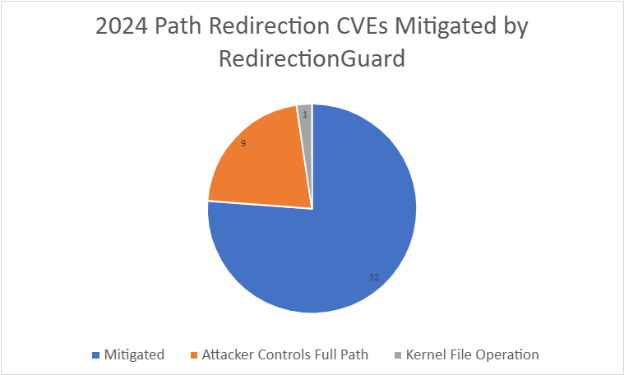 Microsoft expects this feature to have a huge impact on Windows security. The company says that of the 42 filesystem path redirection attacks it patched last year, 32 used attacker-created junctions to exploit local services and could have been blocked if RedirectionGuard existed.