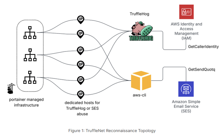 TruffleNet campaign: Fortinet has spotted a campaign targeting cloud environments. The campaign, named TruffleNet, is built around the TruffleHog open-source toolkit.