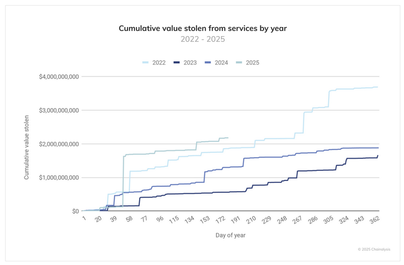Crypto-thefts this year reach $2.17b: Hackers and scammers have stolen over $2.17 billion in crypto assets in the first half of this year. The sum is already larger than last year's total, but most of it is just one hack—the DPRK's $1.5 billion ByBit hack.