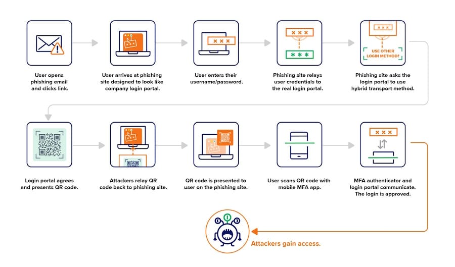 This new phishing technique resembles the structure of Attacker-in-the-Middle phishing kits that have been using reverse proxies to intercept SMS MFA challenges for the past decade.