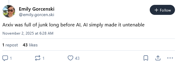 arXiv updates moderation after wave of AI slop: The arXiv portal has updated its moderation for the computer science category and will stop accepting papers that have not gone through a peer review first. The portal blamed the huge influx of AI slop.