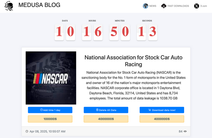 NASCAR confirms April ransomware attack: NASCAR has finally confirmed a ransomware attack that hit its systems in April. At the time, the incident was claimed by the Medusa gang.