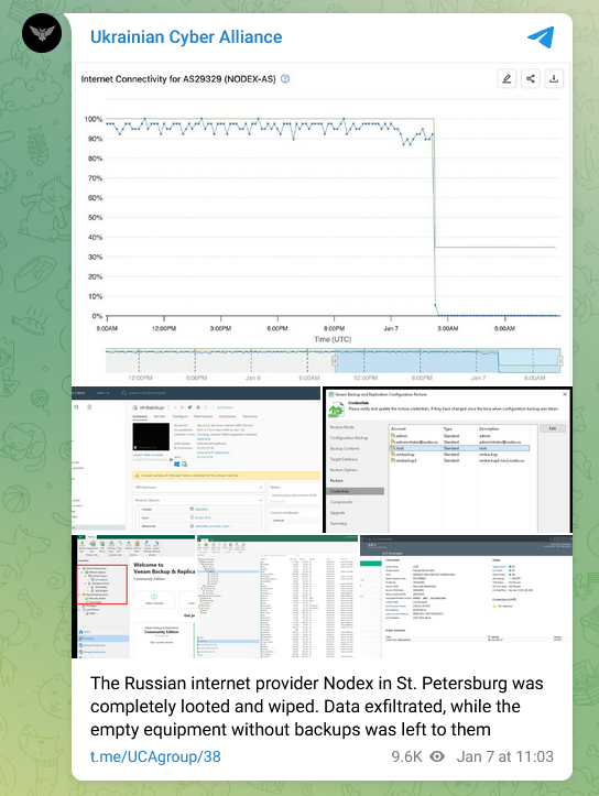 Nodex data wiping attack: A Ukrainian hacking group named the Ukrainian Cyber Alliance has hacked and wiped the infrastructure of a Russian ISP named Nodex.