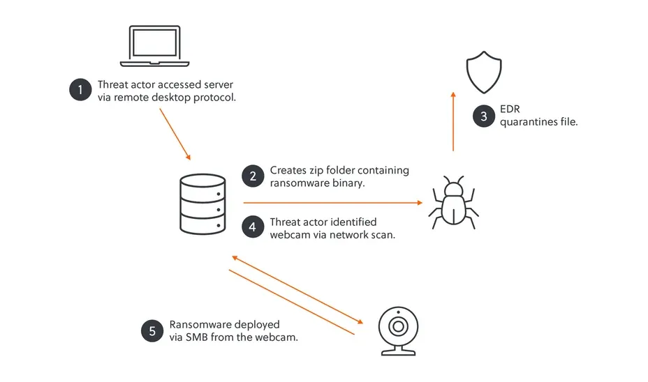 Ransomware attack via a webcam: The Akira ransomware group infected a webcam and used it as a safe spot to deploy its ransomware and encrypt a victim's network. The group went for the webcam after its attempt to deploy ransomware on Windows systems was detected and blocked by a local EDR. Security firm S-RM says Akira deployed its ransomware on the webcam's Linux operating system and then encrypted the entire network via SMB.