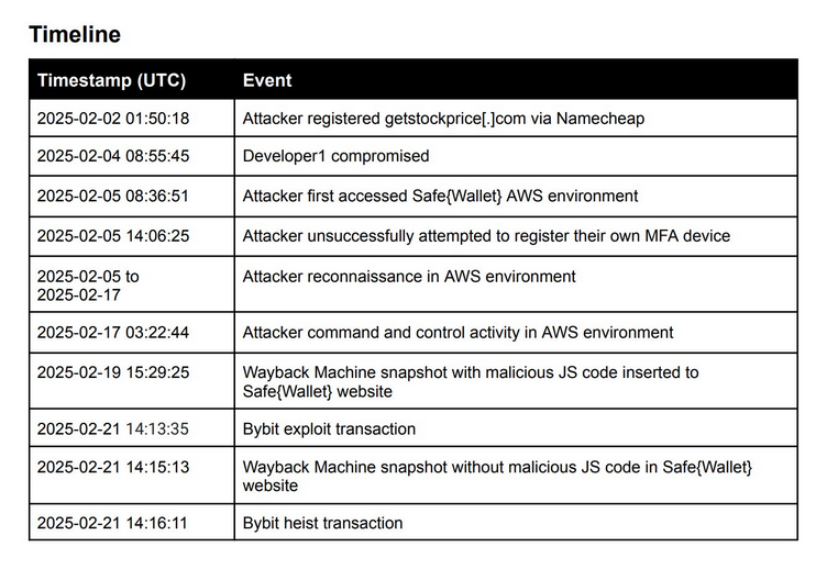 Bybit hack post-mortem: North Korean hackers compromised multi-signature wallet provider SafeWallet through a social engineering attack that targeted one of its developers. According to a new post-mortem report, the point of entry appears to have been a malicious Docker file that was executed on the employee's computer. The Docker file deployed malware that stole local credentials. The attackers then used the developer's AWS account to add malicious code to the SafeWallet infrastructure. The malicious code targeted a specific multi-sig wallet used by the Bybit cryptocurrency exchange. The attackers later stole $1.5 billion from the exchange.