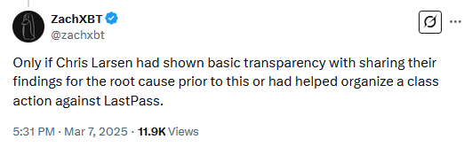 US recovers some of the Larsen funds: The FBI has recovered $23 million worth of crypto stolen from Chris Larsen, the co-founder and executive chairman of the Ripple (XRP) cryptocurrency. The recovered funds are just a small part of the tokens stolen from Larsen in January of last year. The funds were estimated at over $110 million last year but are now worth over $700 million. Hackers stole the Larsen funds by first stealing password stores from password manager LastPass in 2022. Since the attack, the hackers have been slowly cracking passwords and emptying out crypto wallets. As of May 2024, over $250 million worth of crypto assets were stolen using the LastPass data. [Addition coverage in KrebsOnSecurity]