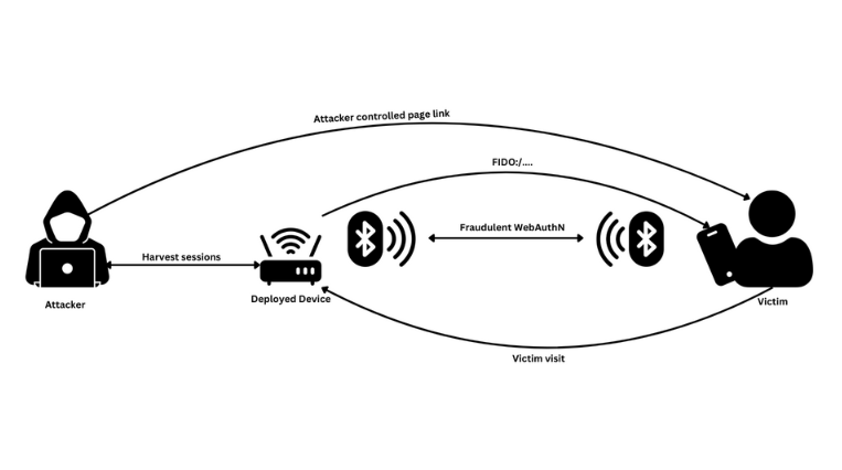 The device, which could be a tiny Raspberry Pi hidden in an attacker's backpack, would be used to host a custom web server that triggered a passkey authentication flow.