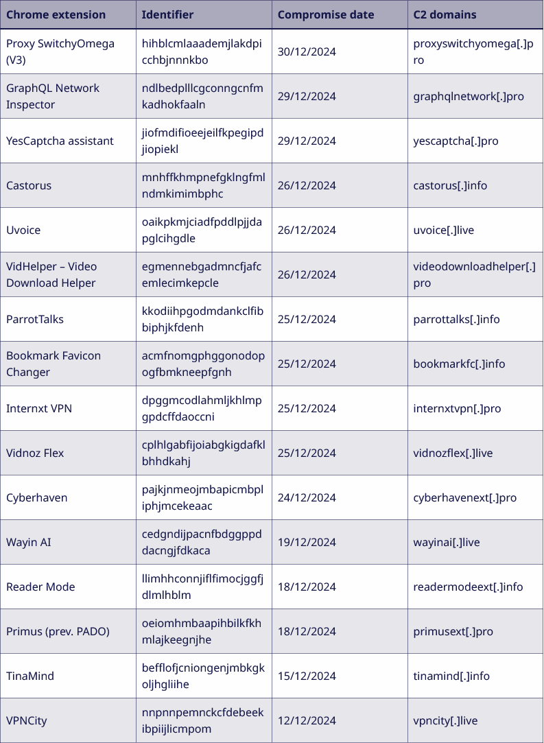 Chrome extension dev phishing campaign: French security firm Sekoia says that a hack of the CyberHaven Chrome extension last year was part of a larger campaign that compromised 15 other extensions as well. The attackers used a malicious OAuth application to harvest the developer's credentials and then push malicious versions of the extensions. The hacked extensions were then used to collect credentials for Facebook for Business and ChatGPT. Sekoia says the threat actor behind the hacks has been going after Chrome extension developers since at least 2023.