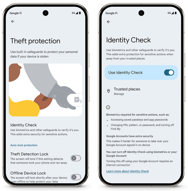 Android Identity Check: Google has announced a new Android security feature named Identity Check that will ask users to authenticate using biometrics when the user's phone travels outside a common trusted location. The new authentication prompt will show up when the user wants to access a phone's settings and account data. Google says the feature is designed to protect the user's data in the case of a device's theft.