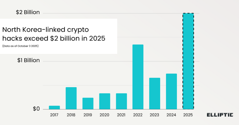 DPRK goes over $2 billion in stolen crypto: North Korean hackers have stolen more than $2 billion worth of cryptocurrency this year. This is the largest annual total on record and brings the regime's total to more than $6 billion overall. Most of the year's stolen assets came from the February $1.46 billion Bybit hack.