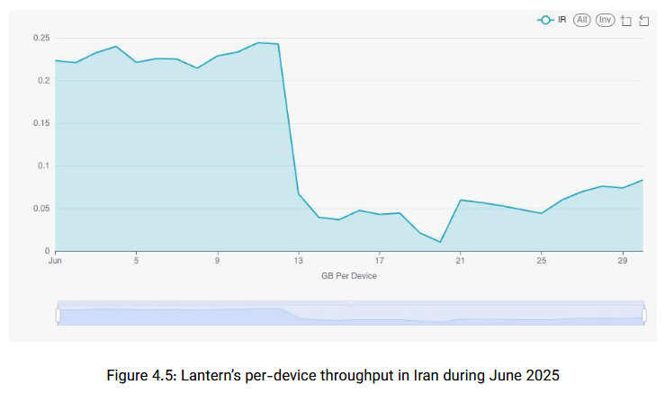 "The June 2025 shutdown had a significant impact on circumvention tools, revealing a new level of sophistication in government interference. Data shows that even when users could connect, their data traffic was often throttled, which in many cases rendered these tools functionally useless for anything more than basic text communication."