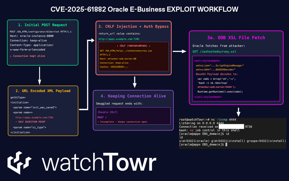 Oracle zero-day discovered: Oracle has released an out-of-band security update to fix a zero-day exploited in the wild. The zero-day (CVE-2025-61882) allows attackers to bypass authentication and run code on Oracle E-Business Suite platforms. It was one of the multiple vulnerabilities used by hackers over the past months to hack servers, steal data, and then extort Oracle customers. The attacks have been linked to the Clop ransom and extortion group (via Google and CrowdStrike). WatchTowr has a technical write-up of the bug, which is basically the undying ../ exploit.