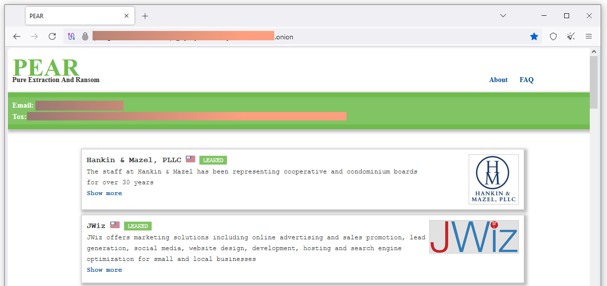 New Pear ransomware: A new ransomware group named Pear launched a leak site last week, which is already listing 18 victims. The name apparently stands for Pure Extraction And Ransom.