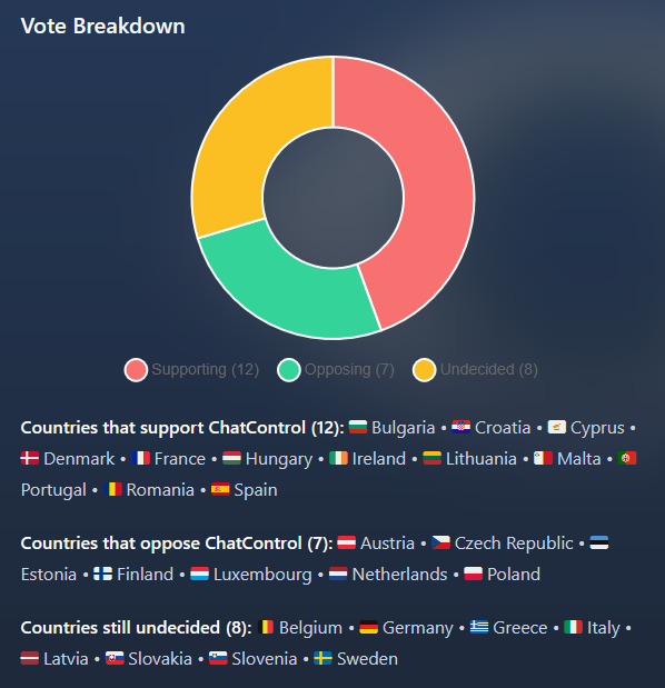 The Netherlands won't support Chat Control proposal: The Dutch government says it won't support Denmark's proposal for an EU Chat Control legislation to force tech companies to introduce encryption backdoors. The proposal is up for a vote on October 14. After initially opposing it, Germany now looks to lean towards a Yes vote.