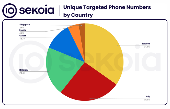 Most of the spam was sent to three countries—Sweden, Italy, and Belgium. Most of the SMS messages contained phishing links for government portals, financial, email, and postal services.