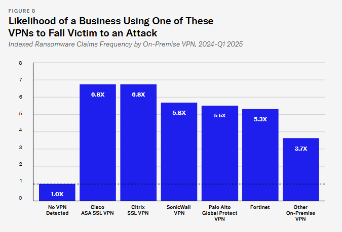VPNs are a major ransomware entry point: Remote access devices like VPNs were the primary entry point for ransomware attacks last year. Cyber insurance provider At-Bay says four in five ransomware attacks were traced to remote access devices, and four in five of those originated via VPN servers. The insurer has recorded a gradual shift away from RDP to VPN as the main entry point over the past five years. Companies running Cisco and Citrix VPNs face a higher risk and are more likely to fall victim to an attack, according to the company.
