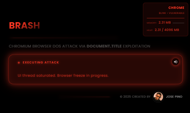 Brash attack: Security researcher Jose Pino has found a Blink engine bug that can crash Chromium-based browsers after roughly 15-60 seconds on a page. The bug is named Brash, and a demo page is here (Careful! This may crash your browser, obviously!!!).