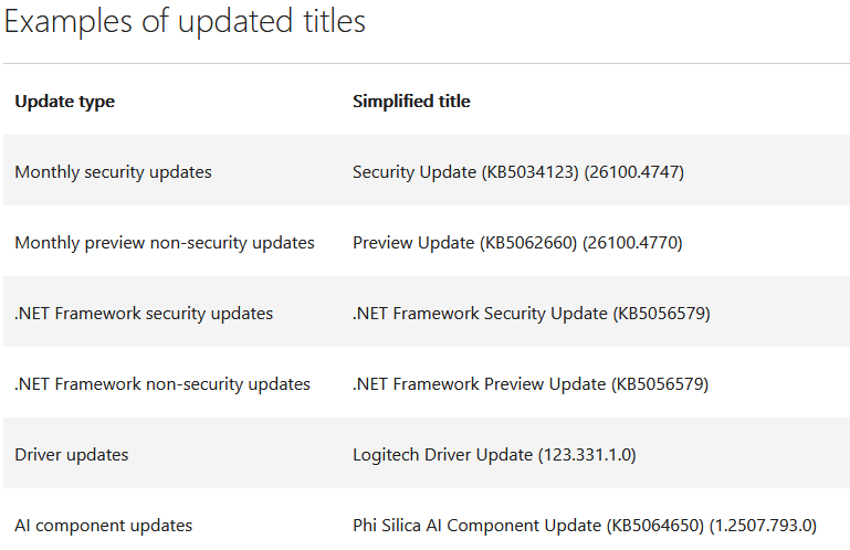 Simpler update titles: Microsoft has updated the titles of its security updates to provide clearer information on what users are installing.