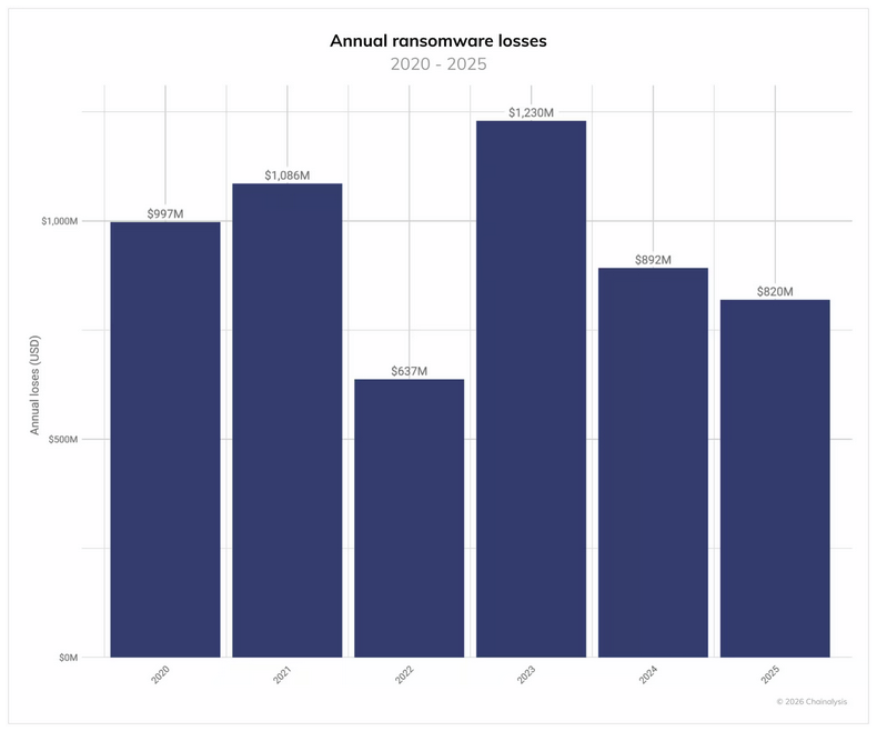 Ransomware payments stagnate: The total ransomware payments last year stagnated even if the number of attacks increased. According to blockchain analysis firm Chainalysis, ransomware gangs made $820 million in 2025, about the same amount they made the year before. Chainalysis joins a larger list of threat intel companies spotting a decline in the number of victims who pay attackers.